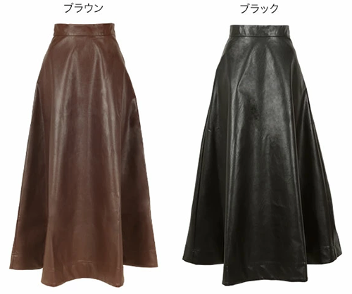 ▶ 上品なツヤ感が目を惹く、フェイクレザーフレアスカート