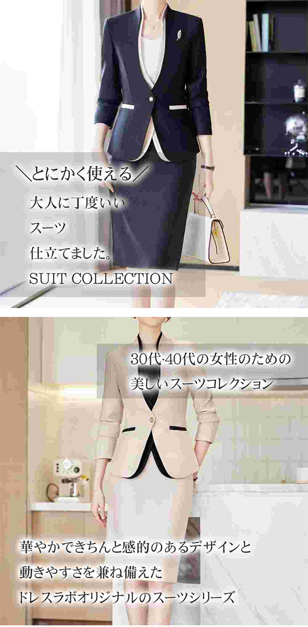 - 華やかできちんと感的のあるデザインと動きやすさを兼ね備えたドレスラボオリジナルのスーツシリーズ。