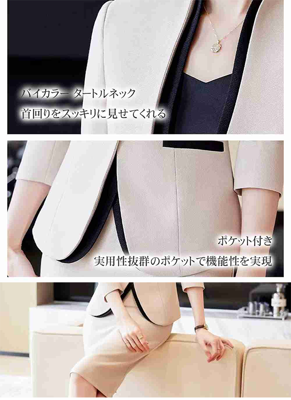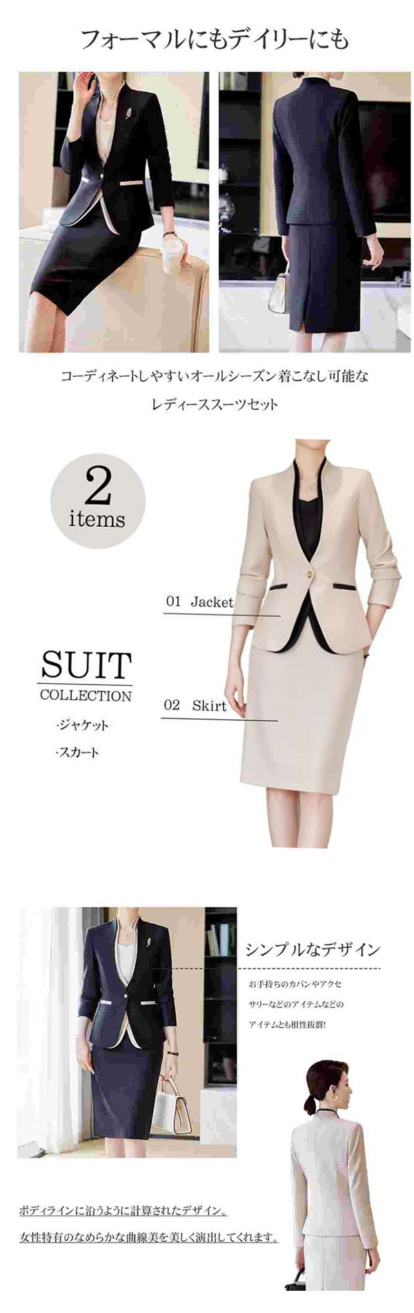 - オールシーズン着こなし可能なレディーススーツセット。