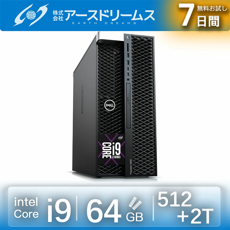 Toggle【商品の説明】中古 デスクトップパソコン PC デル Dell Precision 5820 Tower Windows11 CPU Intel 10世代 Core i9-10940X メモリ 64GBGB SSD 512GB HDD 2TB GPU NVIDIA Quadro P2000 無線LAN なし モニター なし WPS Office