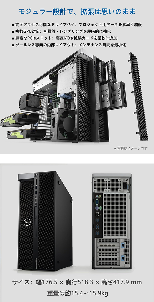 - 将来の拡張にも柔軟に対応できるワークステーション設計。