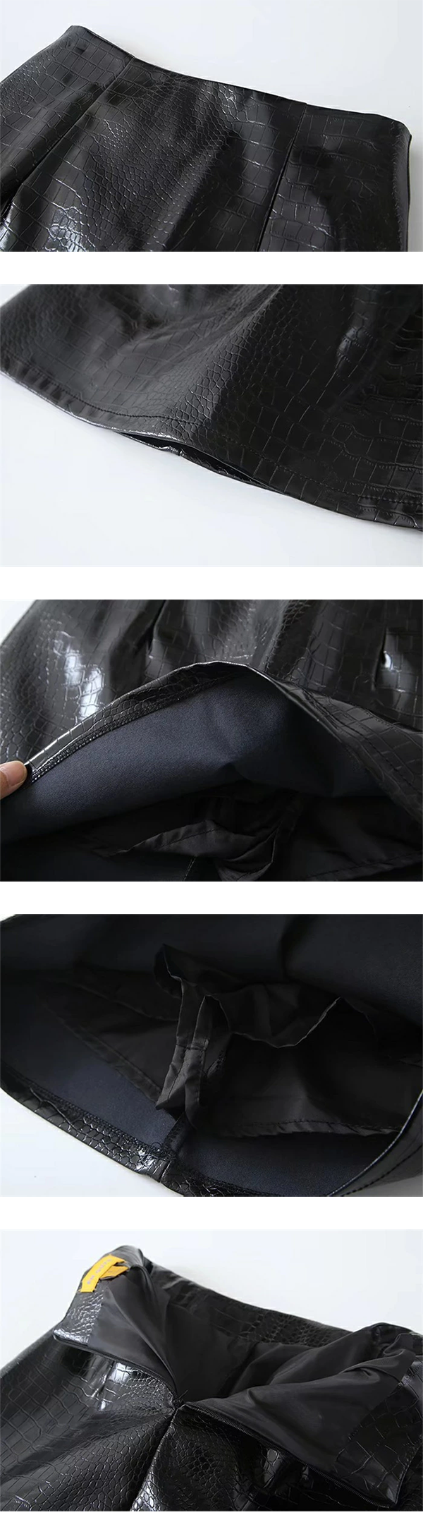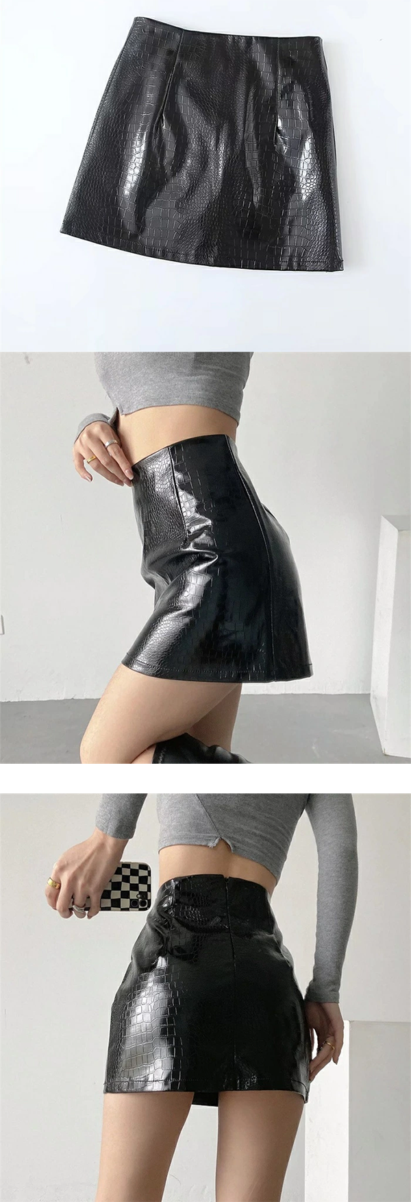 ◎レディース ミニスカート ワニ柄 膝上丈 バックファスナー