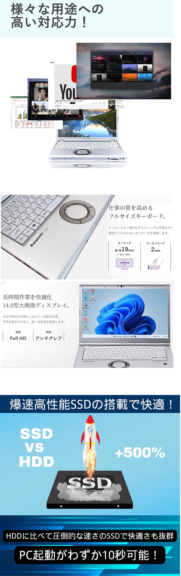 - Core i5+高速起動SSD512GB搭載、起動時間平均16秒!