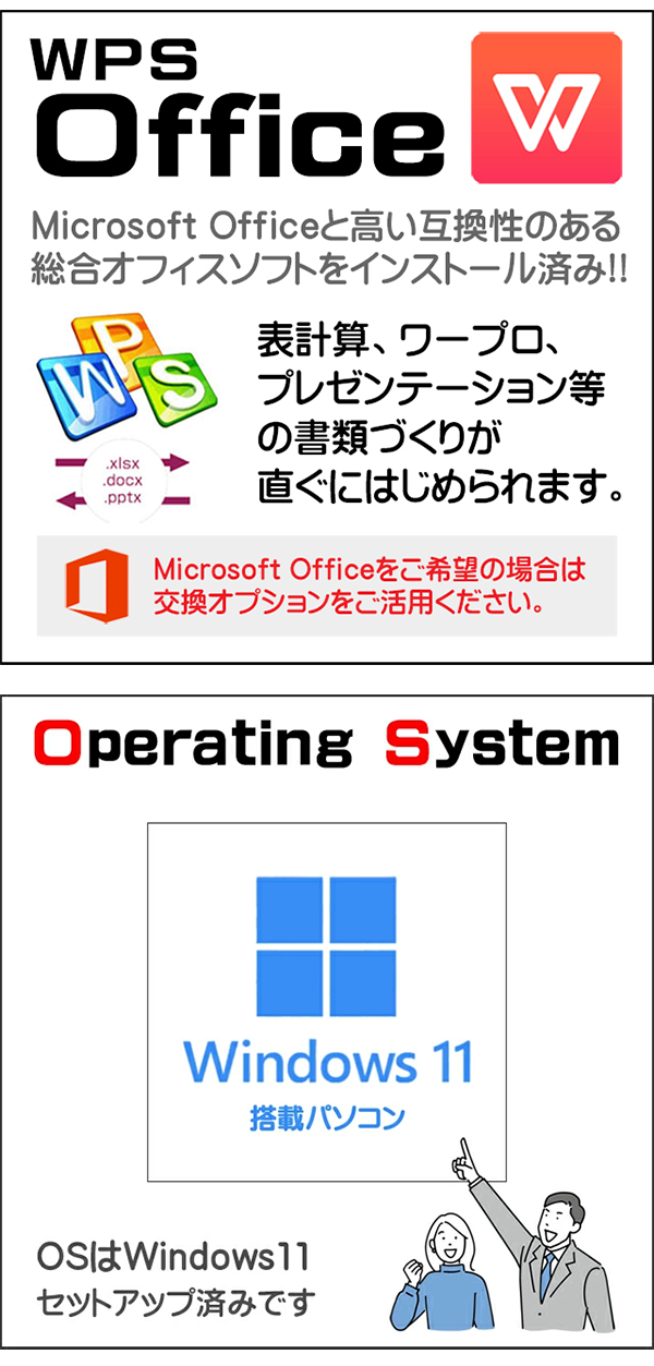 - Microsoft Officeと高い互換性のある総合オフィスソフトをインストール済み!!