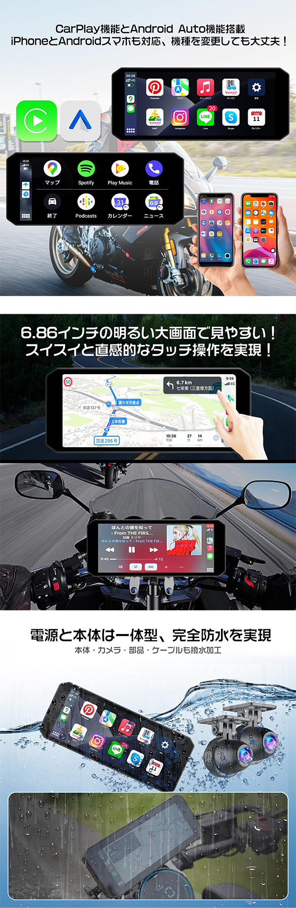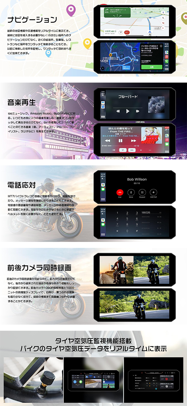 Toggle【商品の説明】バイク スマートモニター ドライブレコーダー ナビ インカム MT7 Changer