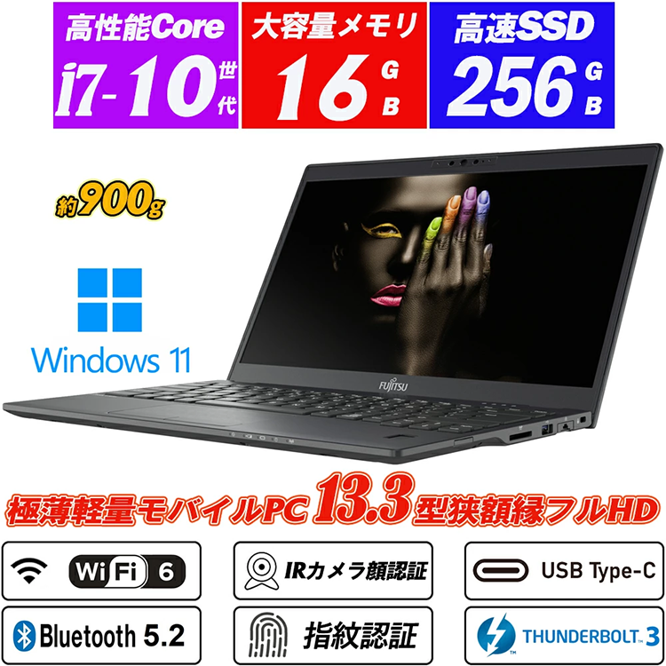 - 薄い!軽い!速い!なLIFEBOOK!片手で軽々持てる超軽量コンパクト筐体、快適なモバイルワークを可能にします。