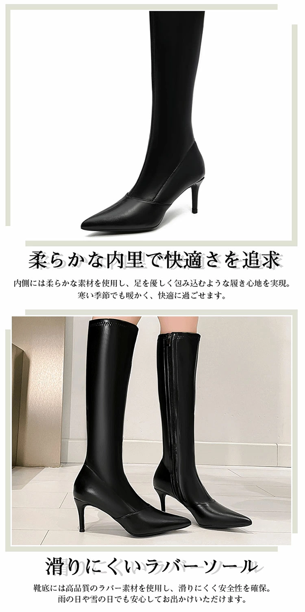 サイドジップ ロングブーツ レディース 疲れない ポインテッドトゥ ピンヒール ミドルヒール 痛くない 歩きやすい オフィスシューズ シンプル レディースブーツ 通勤用 仕事 筒周りゆったり きれいめ 細見え 美脚ブーツ レディース靴 アイボリー 白 |