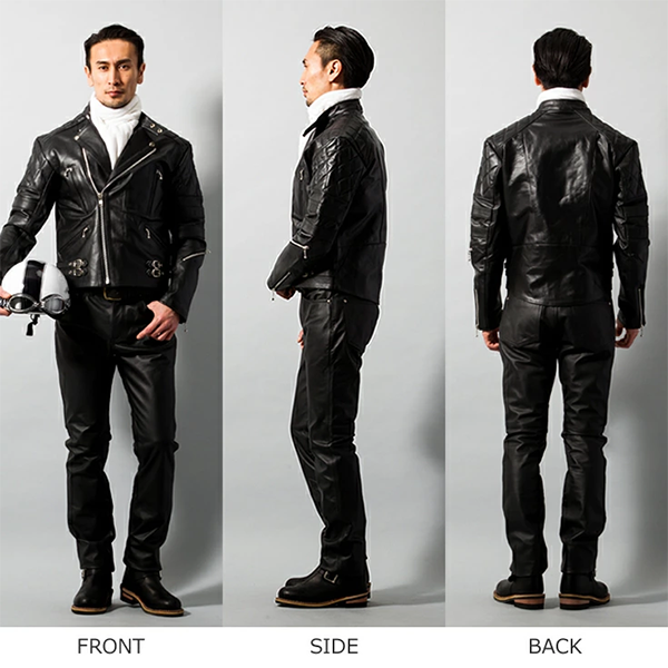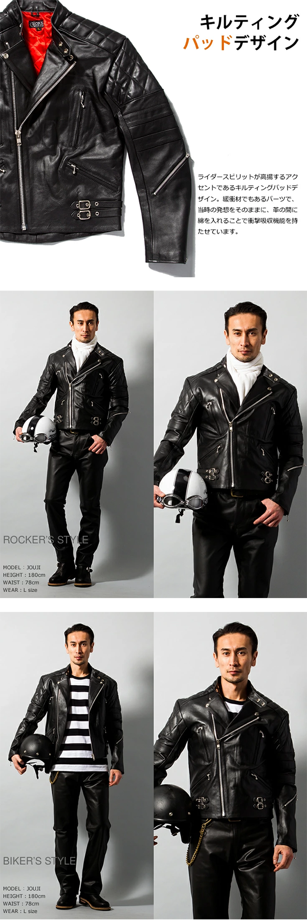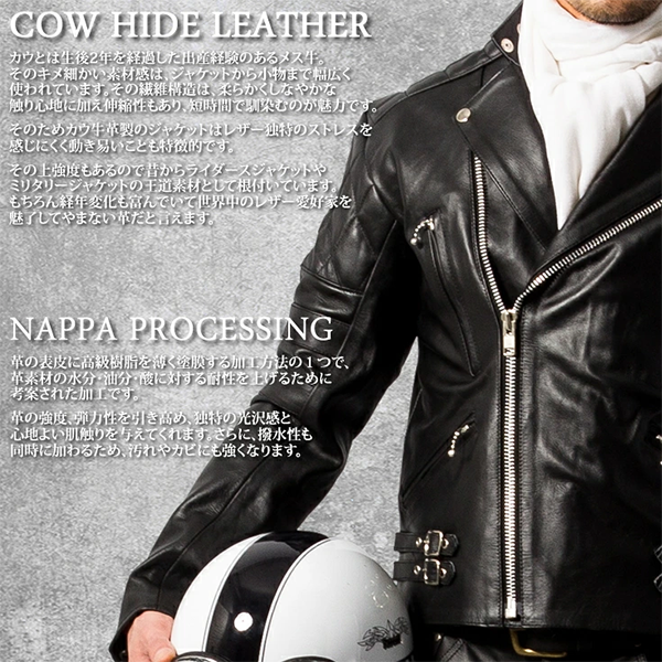 Toggle【商品の説明】メンズ ダブル ライダース ジャケット 本革 革ジャン ブラック Horn Works