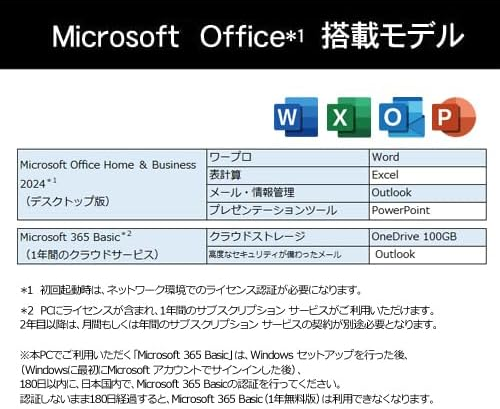 - Windows 11 Home 64ビット/365 Basic + Office Home & Business 2024(デスクトップ版)