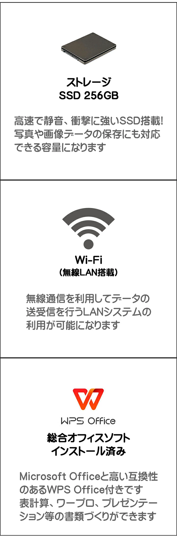 - Officeソフト WPS Office インストール済み(Microsoft Officeと高い互換性)