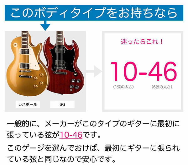 • ゲージ:10-46(.010, .013, .017, .026, .036, .046)