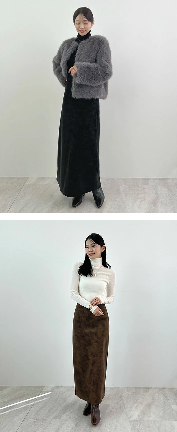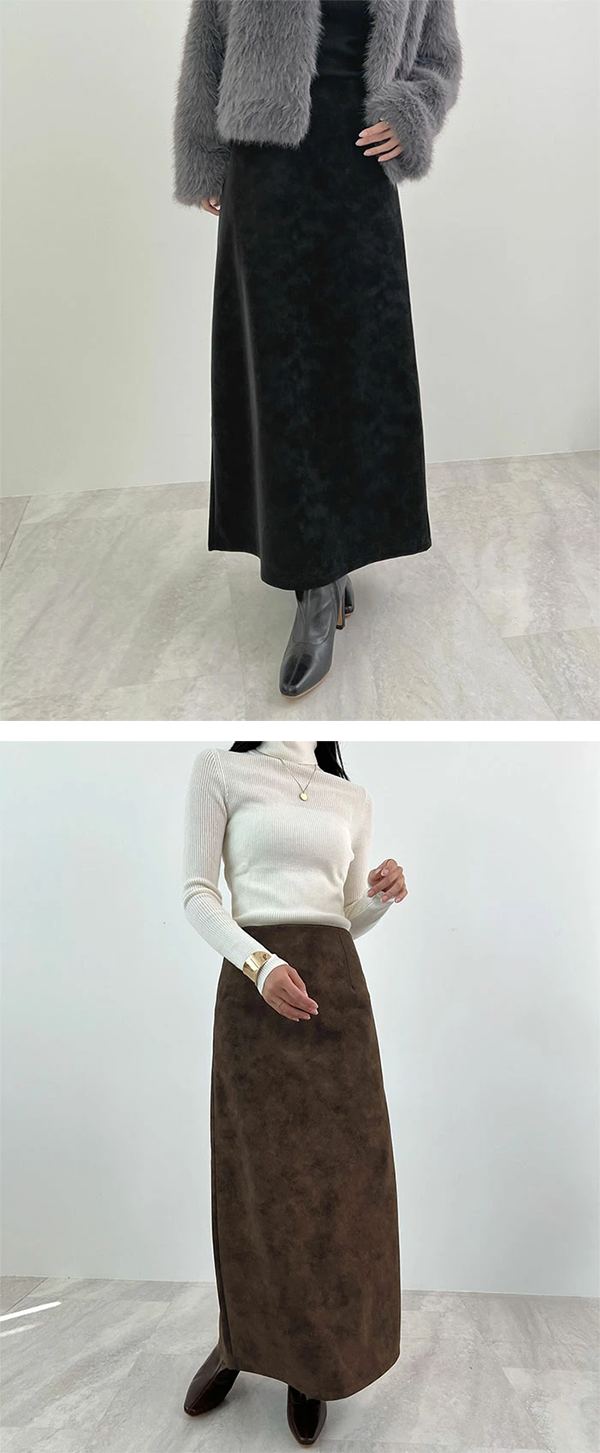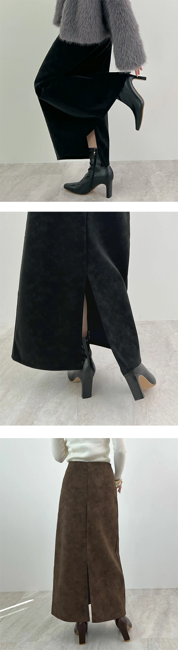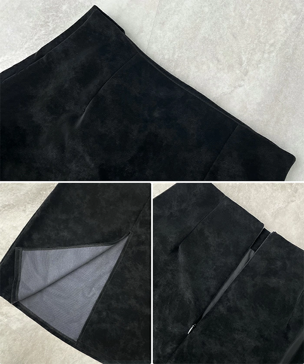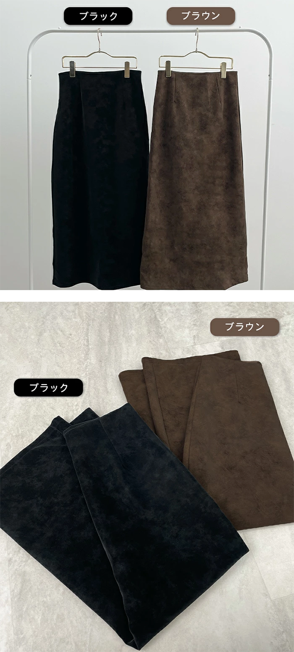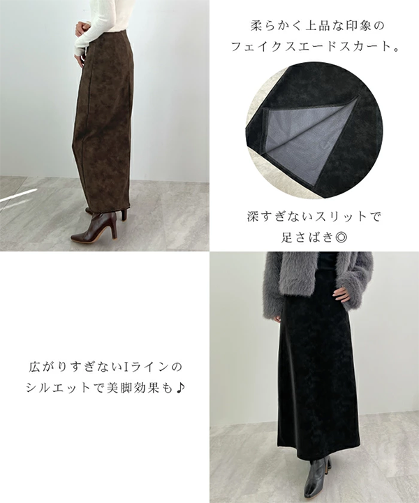 ▶ 上品な質感が魅力のフェイクスエード素材ナロースカート