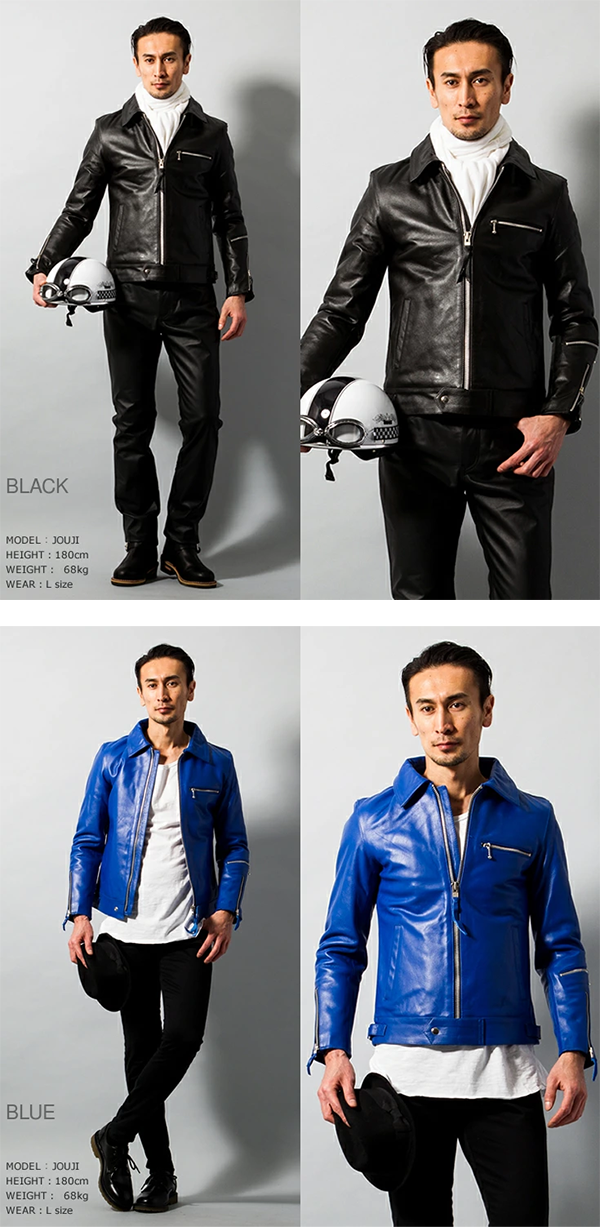 - 全体的にスリムに仕上げられたこのライダースは、 細身のスタイルにとてもマッチ。ライダースなのでバイク乗り用としては言うまでもなく、 スキニーパンツと合わせたパンクロックテイストなスタイルにもおすすめの1着です。