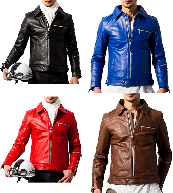 ▶ 楽天市場のサイト: メンズ 本革 シングル ライダース ジャケット UK襟 Horn Works