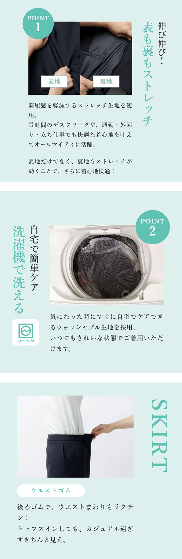 ▶ みんなの声で生まれた大好評 美ジ楽スーツ ロングタイトスカート