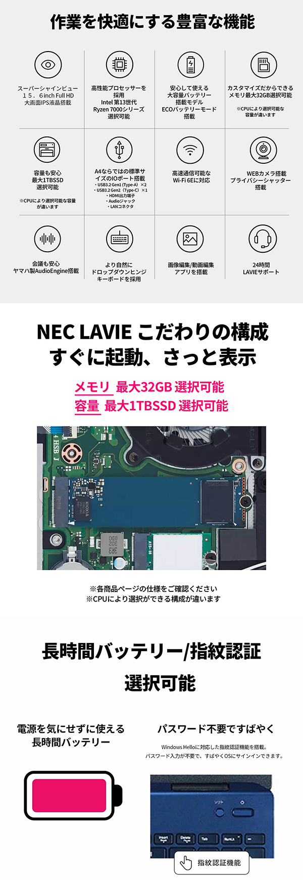 Toggle【商品の説明】新品 ノートパソコン PC NEC LAVIE N15R Windows11 15.6型 CPU Intel AMD Ryzen 5-7535U メモリ 32GB SSD 512GB/1TB 無線LAN Wi-Fi6E Office 365 Basic/Microsoft office 2024 H&B