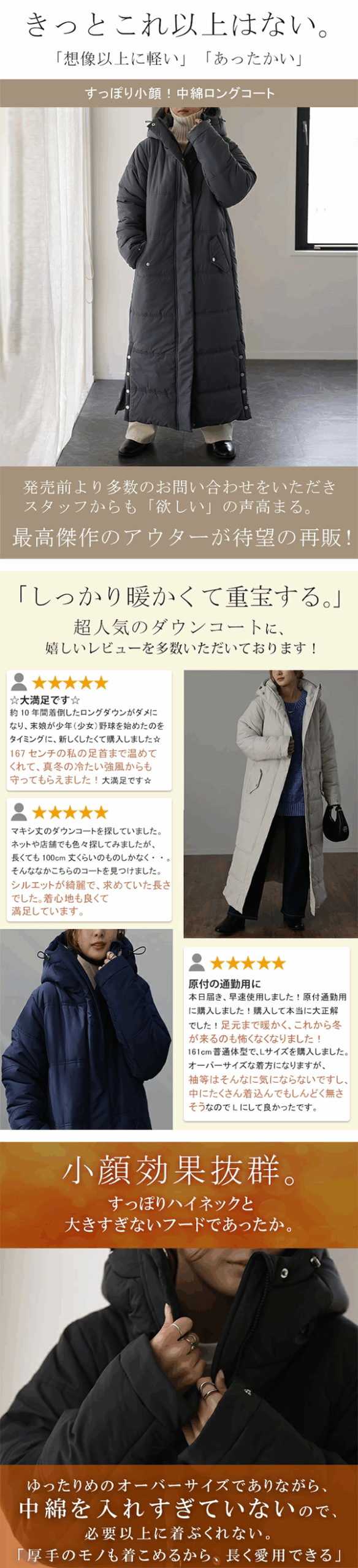 ▶ 想像以上に軽くて暖かい超ロング丈の中綿コート