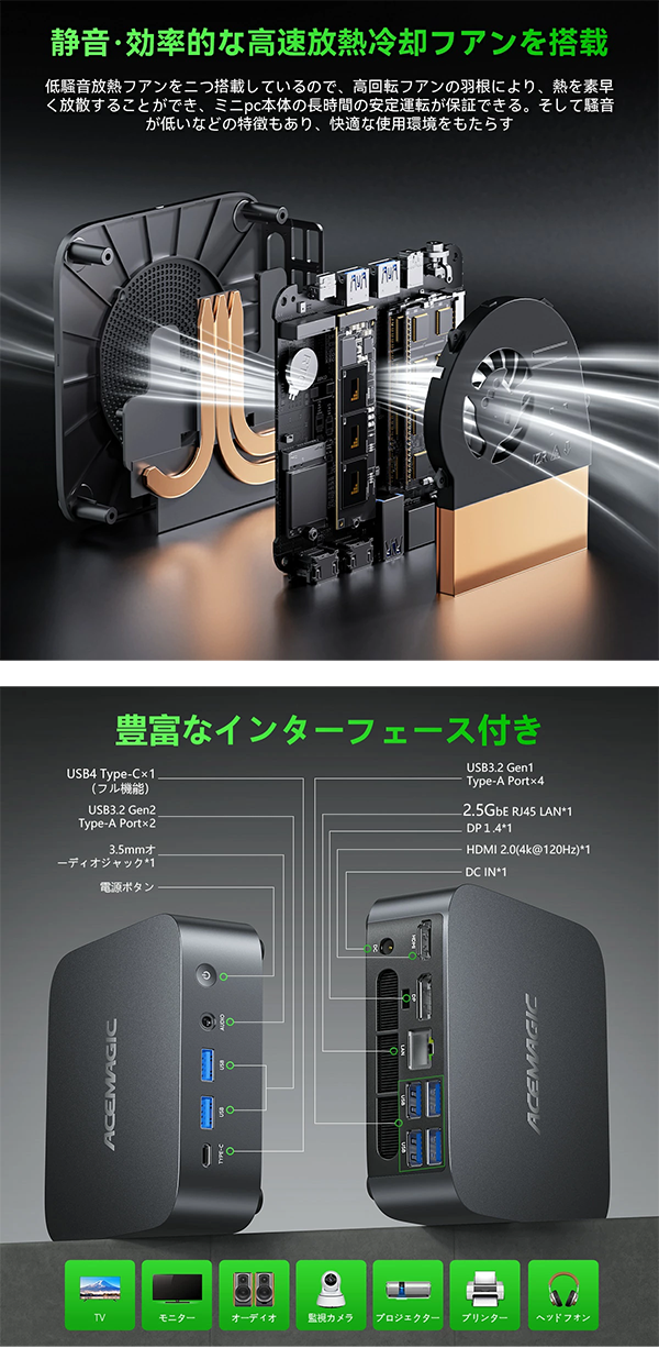 Toggle【商品の説明】新品 ミニデスクトップパソコン PC ACEMAGIC M1 Windows11 CPU Intel 13世代 Core i9-13900HK メモリ 32GB SSD 1TB 無線LAN Wi-Fi6E モニター なし 3画面同時出力
