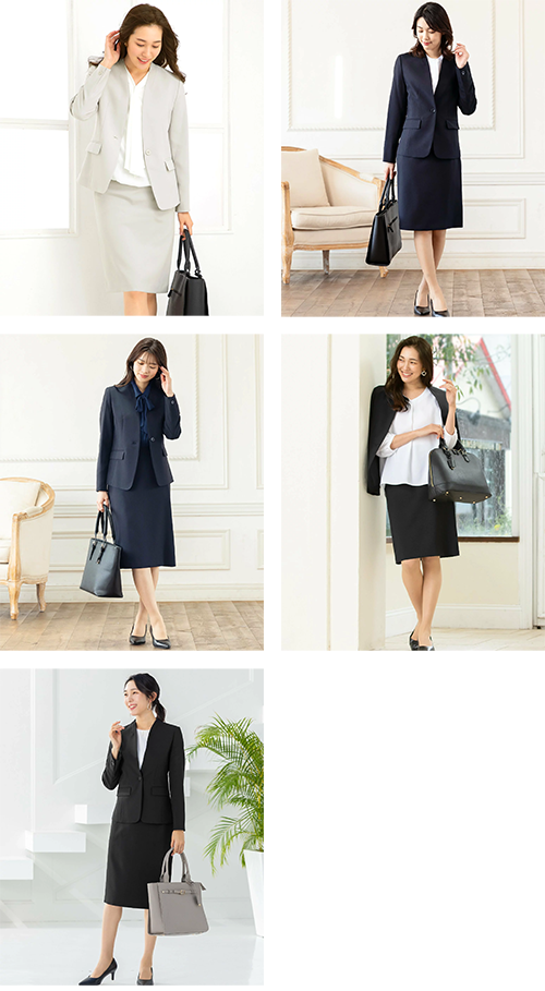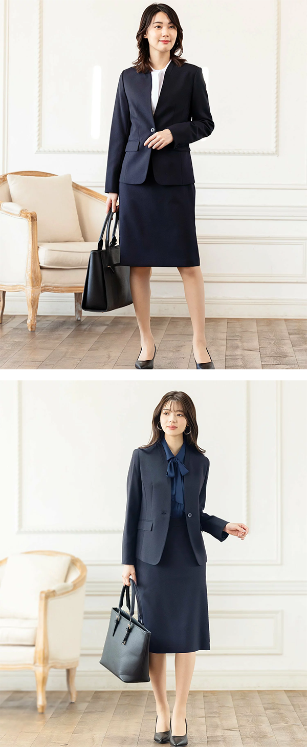 - ビジネススーツの定番として、リクルートスーツとして、女性の様々なスーツシーンに対応します。