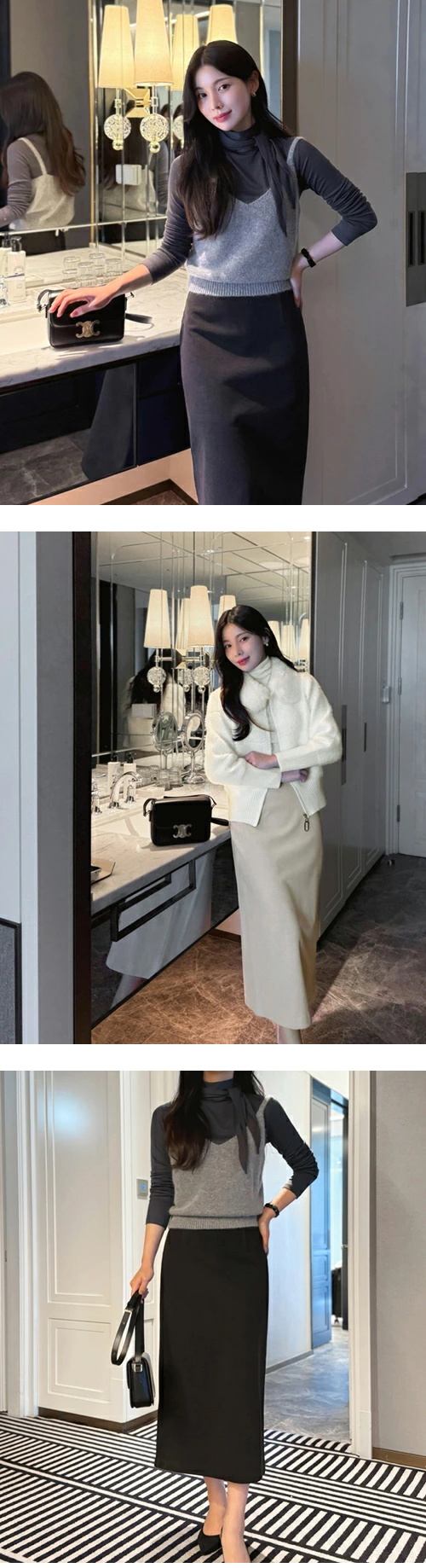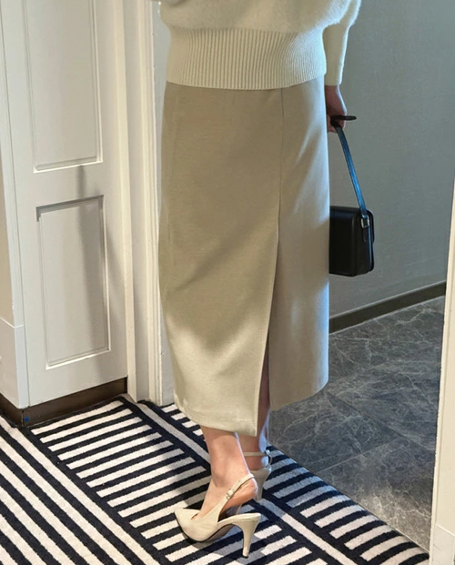 [1112NEW]レディース 韓国ファッション ボトムス スカート ロングスカート 無地 裏起毛 裏地 防寒 スリム フェミニン ベーシック シンプル 着回し 秋 冬 SSBADD |