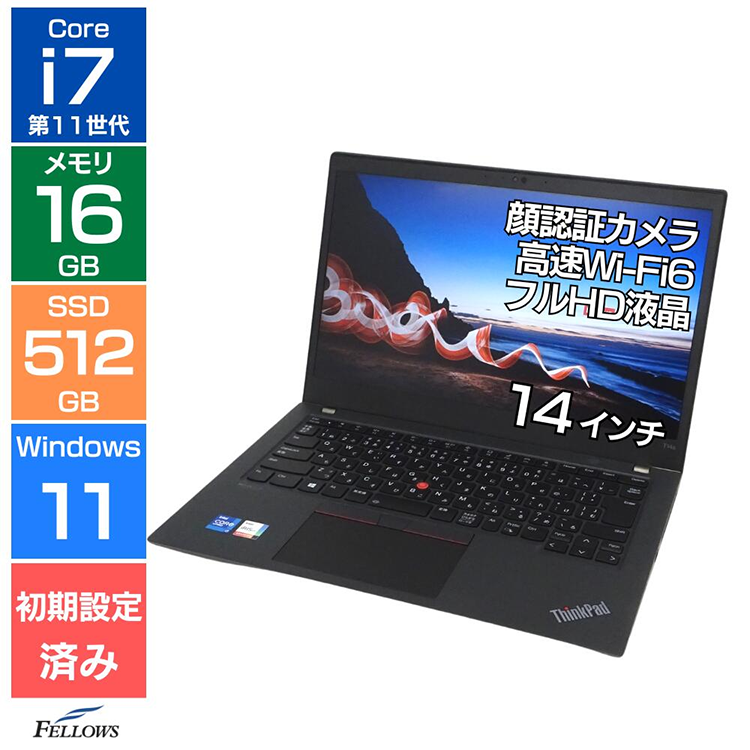 【エントリーでポイント7倍】 ノートパソコン 中古 良品 Win11 Pro i7 第11世代 512GB 高速SSD NVMe 顔認証 カメラ付き Lenovo ThinkPad T14s Gen2 16GBメモリ 14インチ フルHD A4 中古PC |