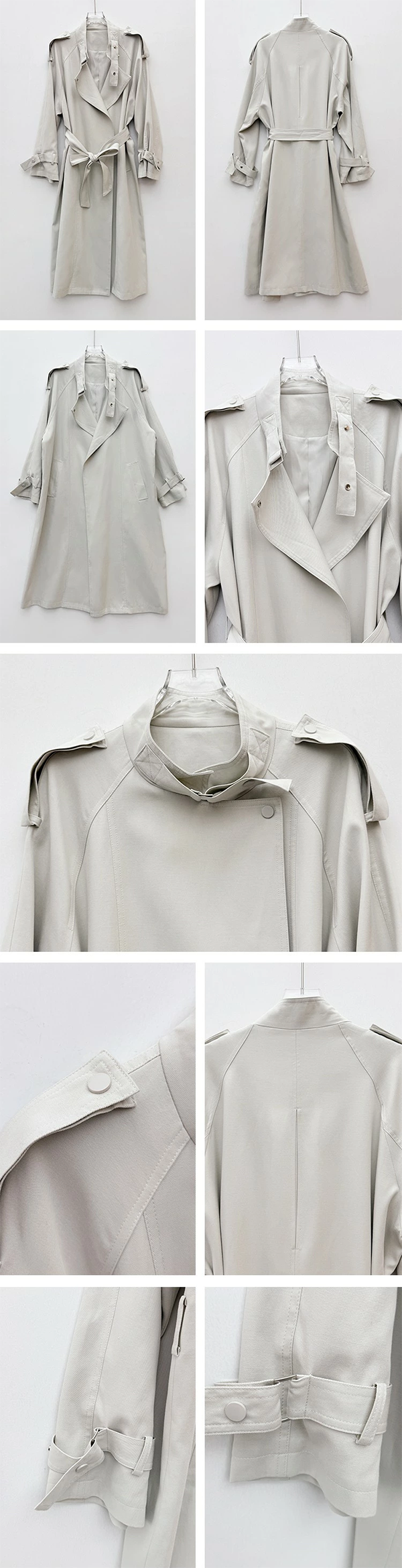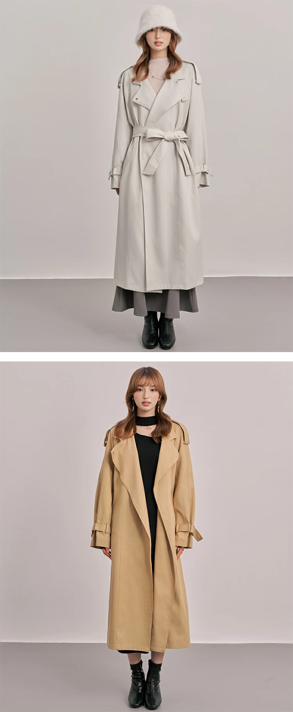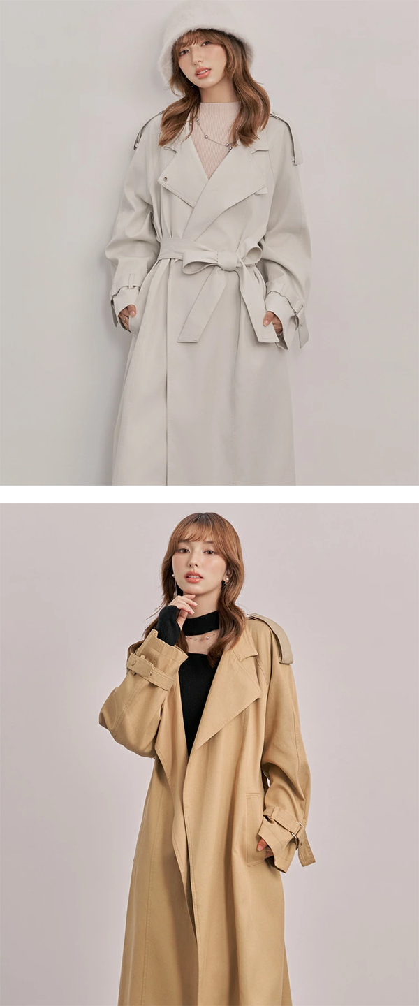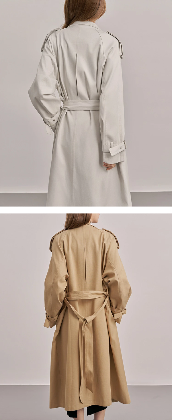 - トレンチらしい本格的なディティールを残し、ポイントで足し引きすることで、より洗練されたレディな雰囲気に仕上がっています。