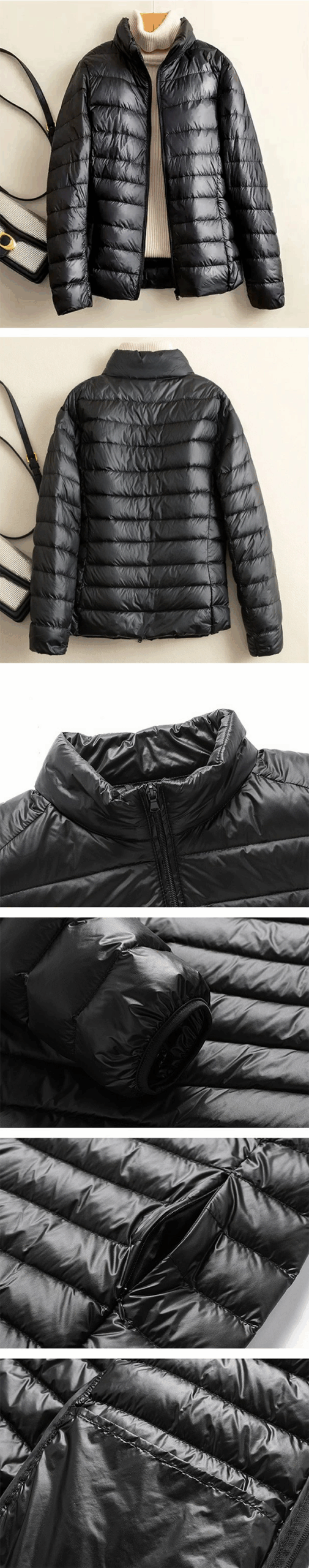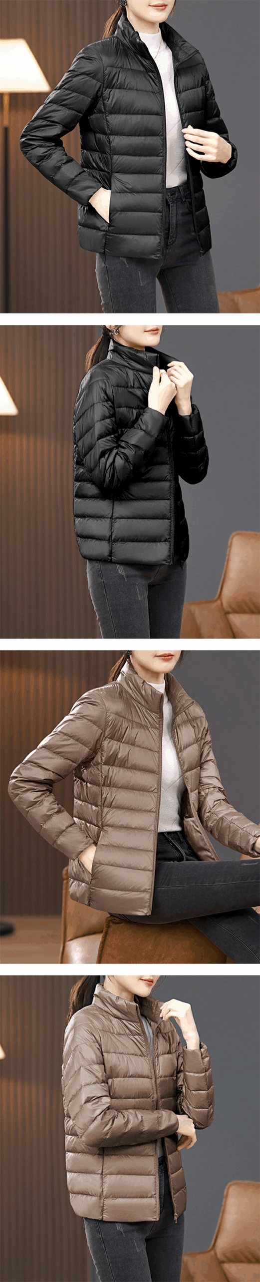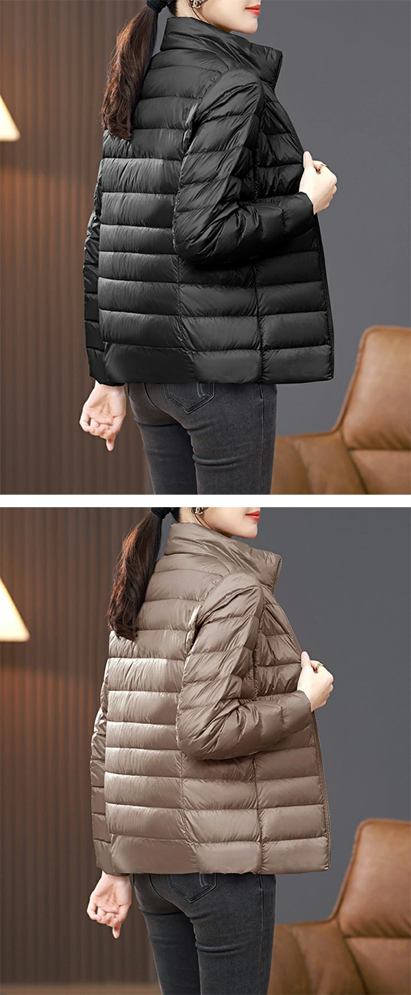 - コンパクトで温かい、プチハイネックジップインナーダウンジャケット。