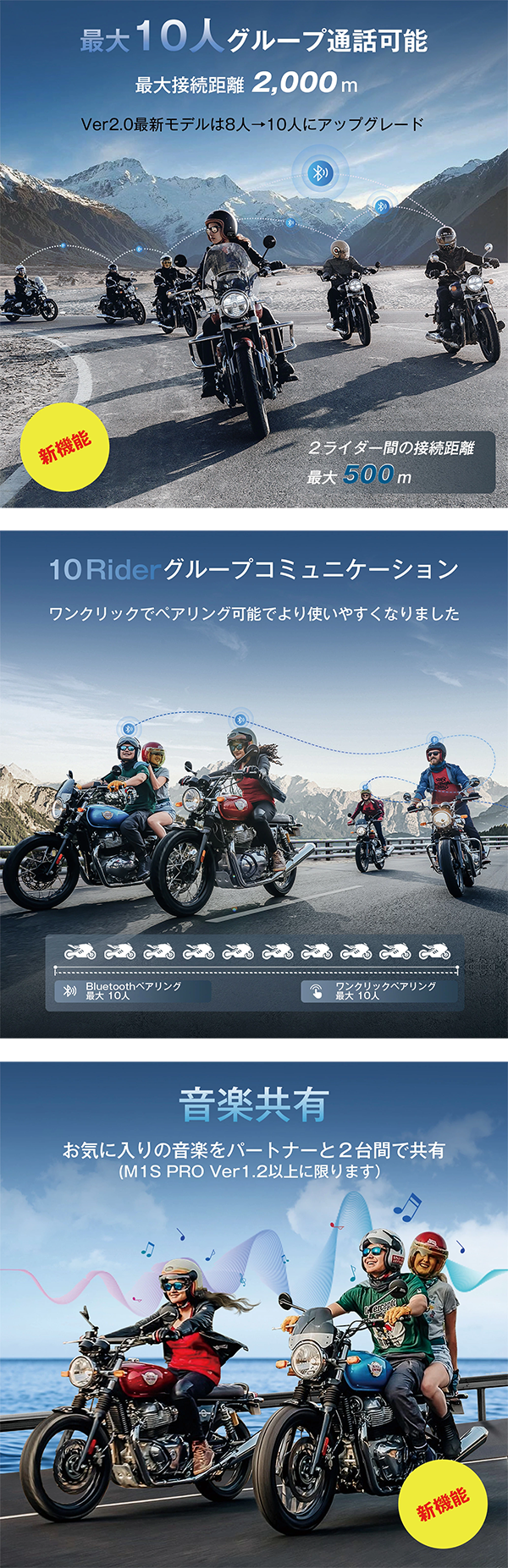 ▶ インカムのM1-S Proは、最大10人までの同時通話に対応