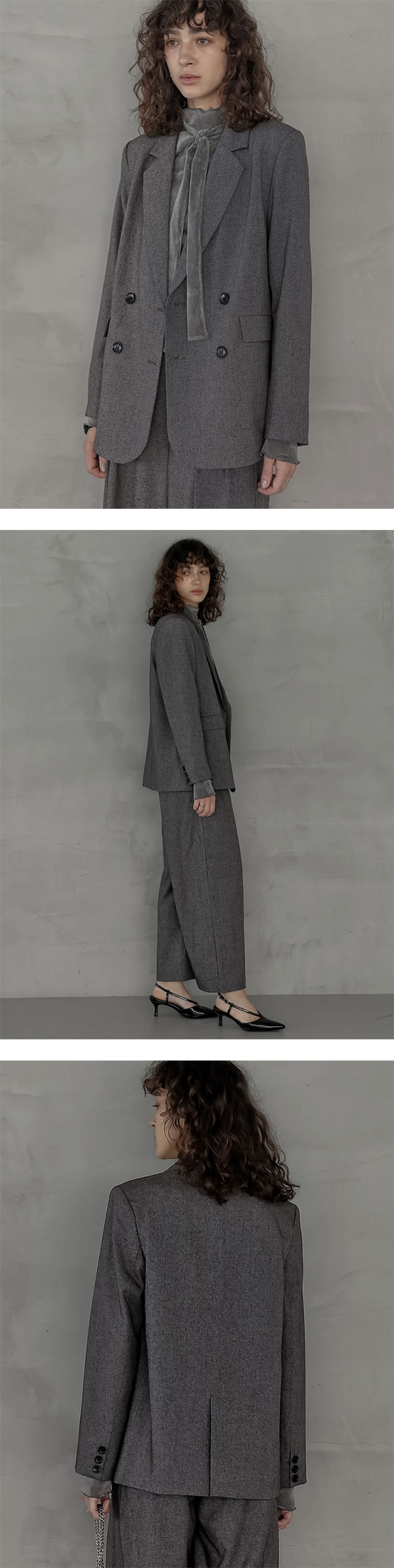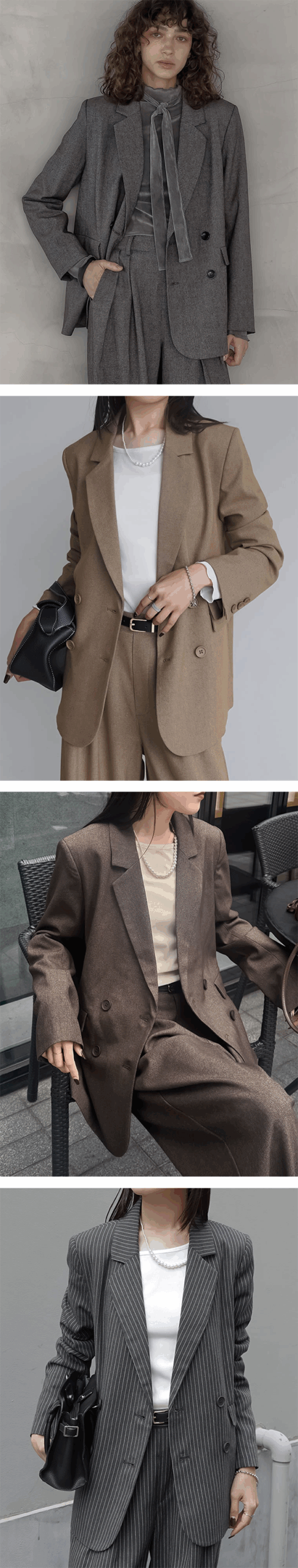 - セットアップのスタイルはもちろん、ワンピースや定番のパンツにさっと羽織る着こなしもおすすめ。