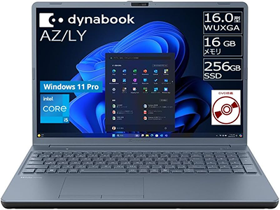 - Dynabook AZ/LYのCore i5-1334U、メモリ16GB、SSD 256GB搭載モデルは、第13世代Core i5プロセッサーと十分なメモリ容量により、日常使いはもちろん、ある程度の重めの作業もこなせるスタンダードノートPCです。