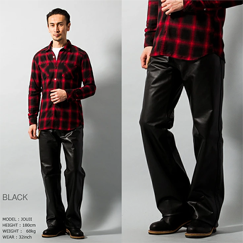 - 商品名 レギュラーフィットブーツカットレザーパンツ メンズ