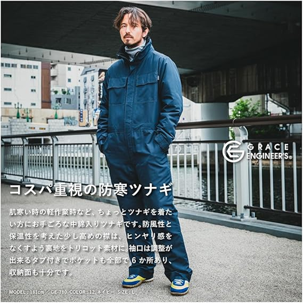 ▶ Amazonのサイト:[GRACE ENGINEER] ツナギ 長袖 GE-780 防風 防寒 作業着 作業服 カジュアル 軽作業 おしゃれ 冬 メンズ