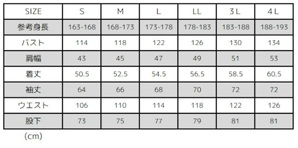 【サイズ】 ・S / M/ L / LL / 3L /4L