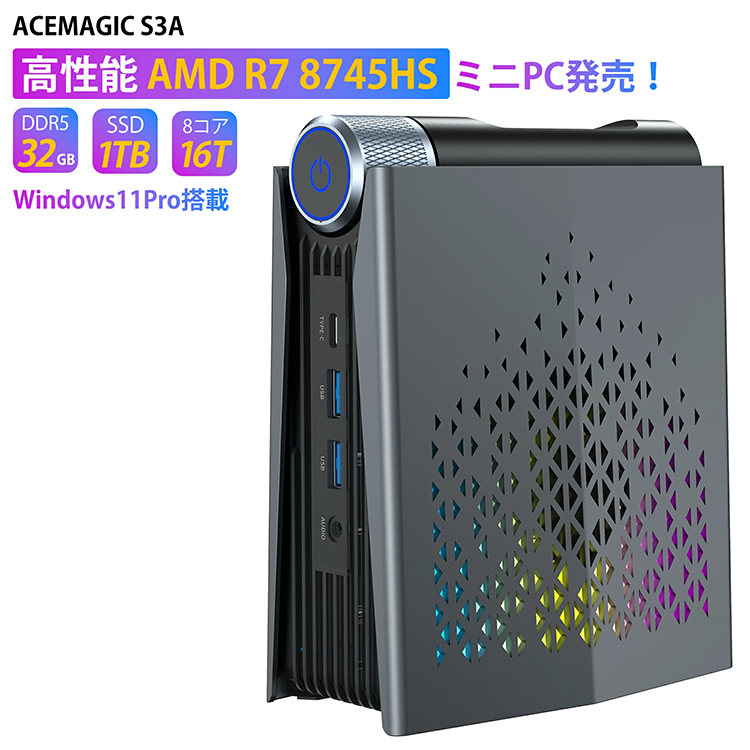 Toggle【商品の説明】新品 ミニデスクトップパソコン PC ACEMAGIC S3A Windows11 CPU AMD Ryzen7 8745HS メモリ 32GB SSD 1TB 無線LAN Wi-Fi6 モニター なし 3画面同時出力