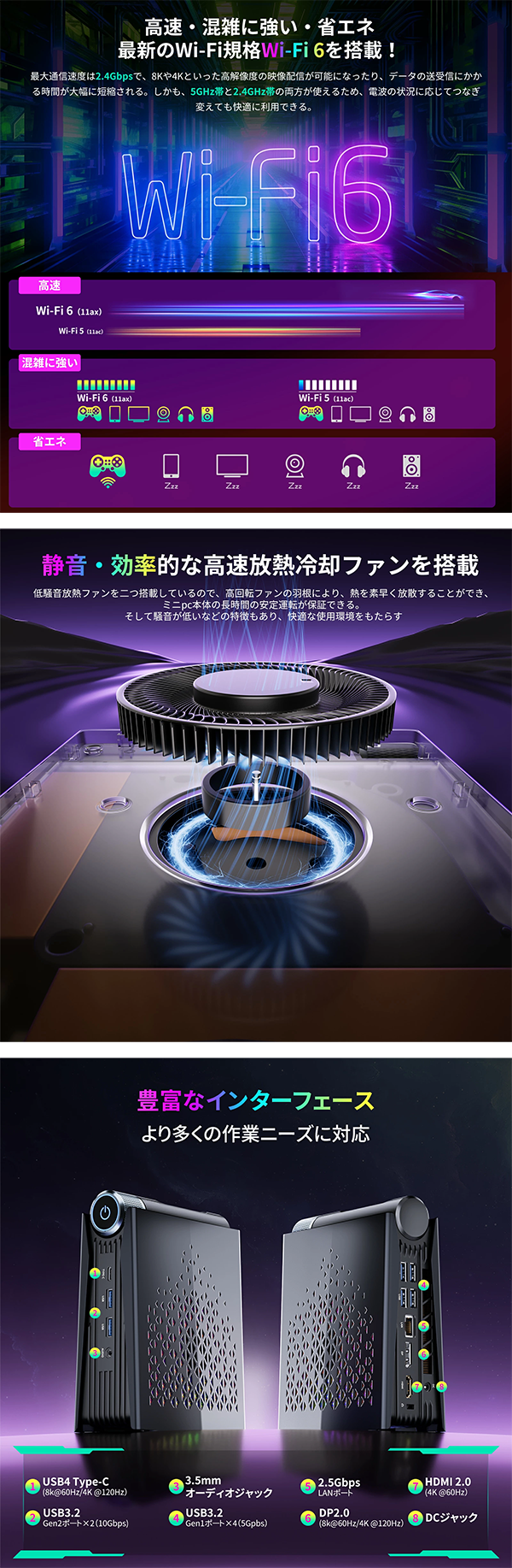 - 接続性 Wi-Fi 6、Bluetooth 5.2、2.5G LANポート