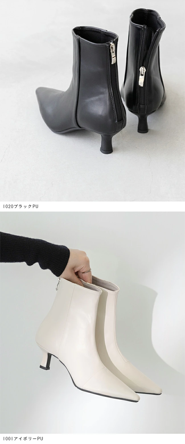 - ジッパーをあえて後ろ側につけることでアクセサリー感覚で楽しめて、足もとのポイントにも。