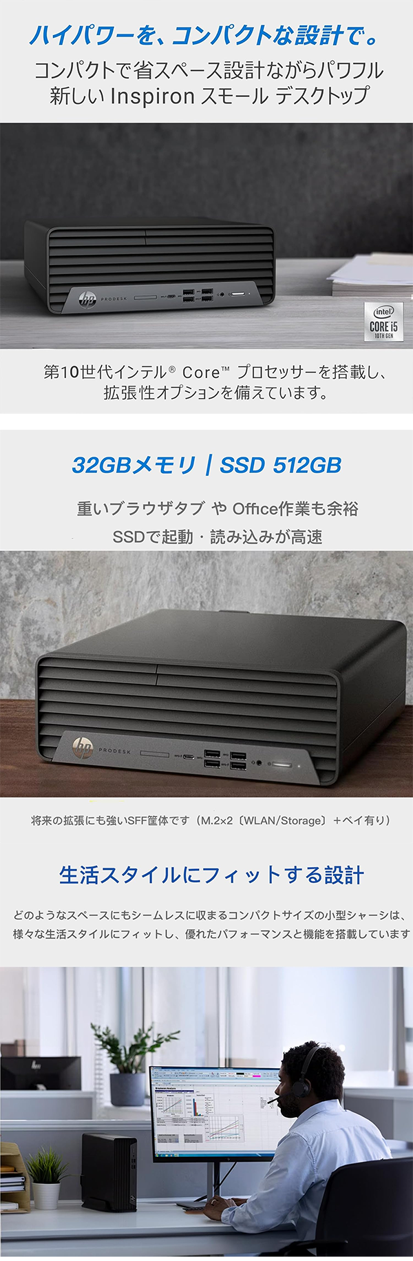 - HP ProDesk 600 G6 SFF Core i5-10500 メモリ 32GB SSD 512GBは、省スペース型ビジネス向けデスクトップパソコンの高性能カスタム構成モデルです。
