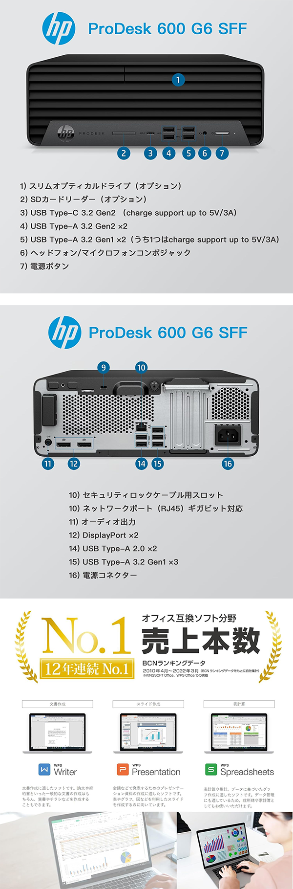 ▶ 楽天市場のサイト: 中古 デスクトップパソコン PC HP ProDesk 600 G6 SFF 10世代 Core i5-10500 Windows11 WPS Office