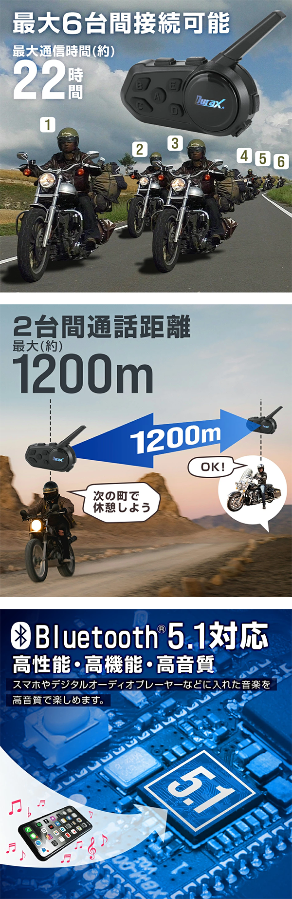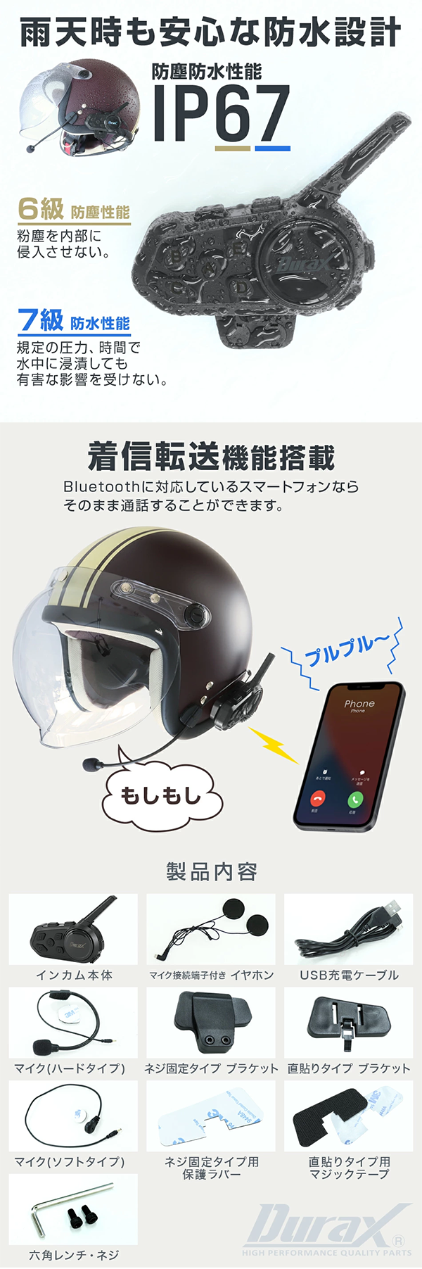 Toggle【商品の説明】バイク インカム 通信 ヘルメット装着 6人通話 DAA01060 Durax WEIMALL