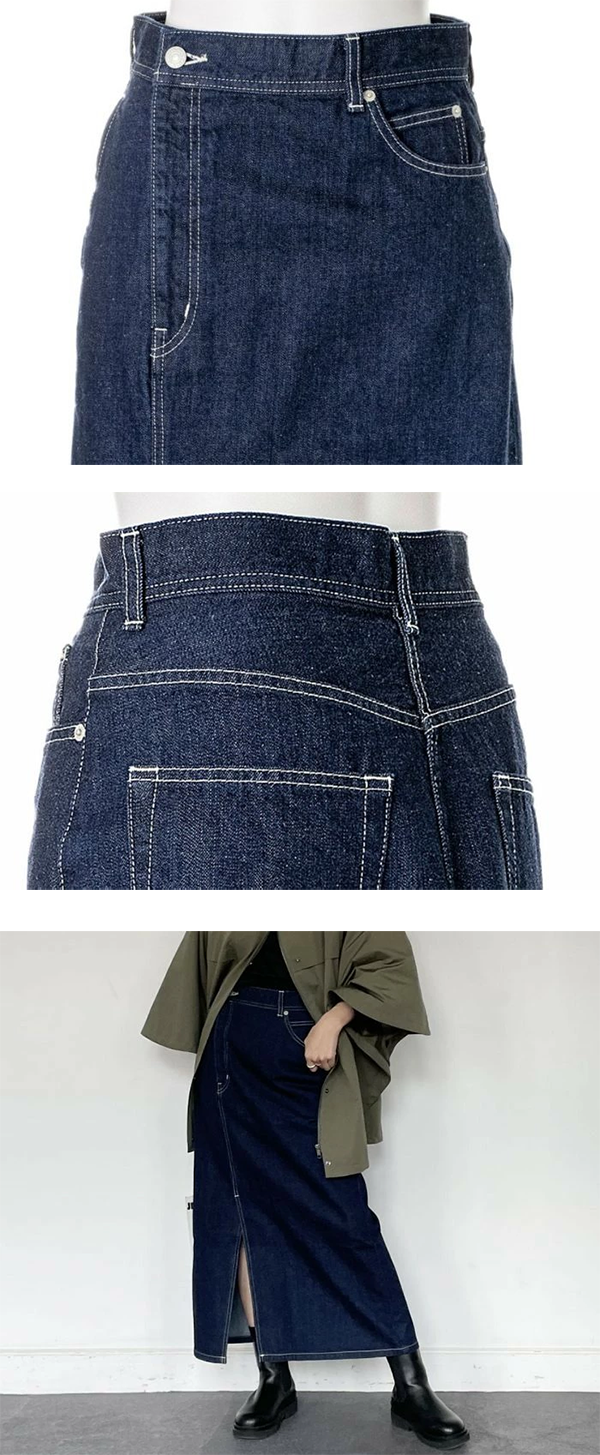 Toggle【商品の説明】レディース デニム タイトスカート ロング 86.5~87.5cm丈 フロントスリット フロントファスナー ENTO