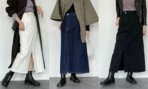 ◎レディース デニム タイトスカート ロング Fスリット/ファスナー