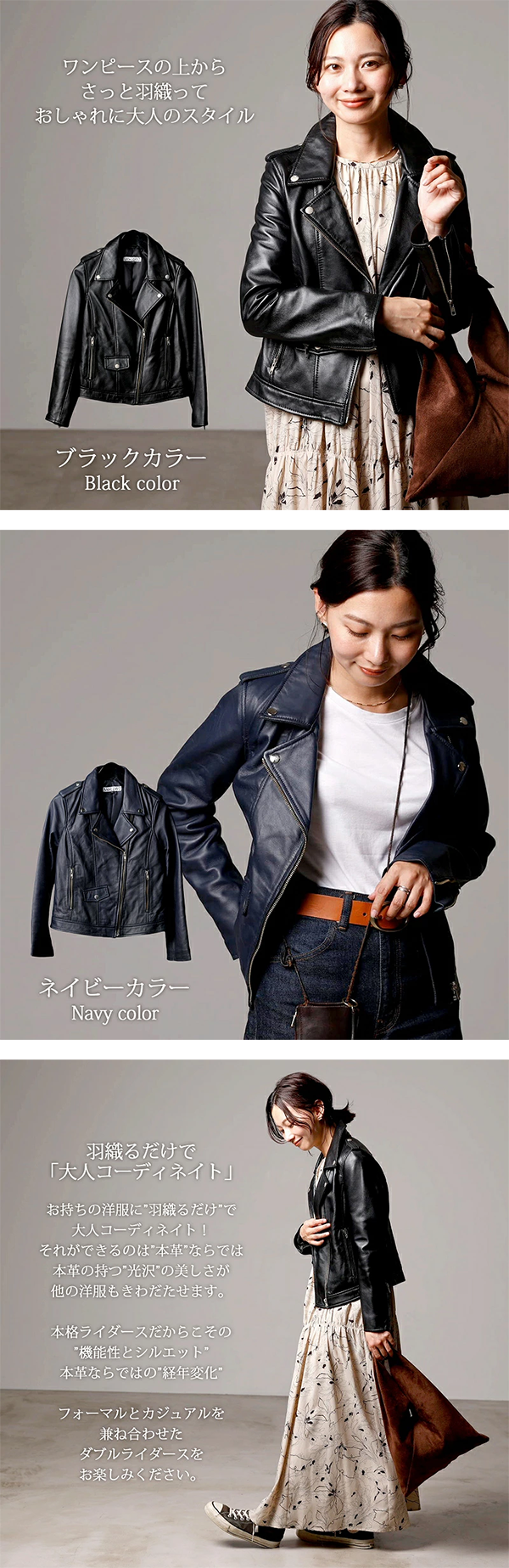 ▶ 楽天市場のサイト: レディース ラムレザー 本革 ダブル ライダース ジャケット 但馬屋