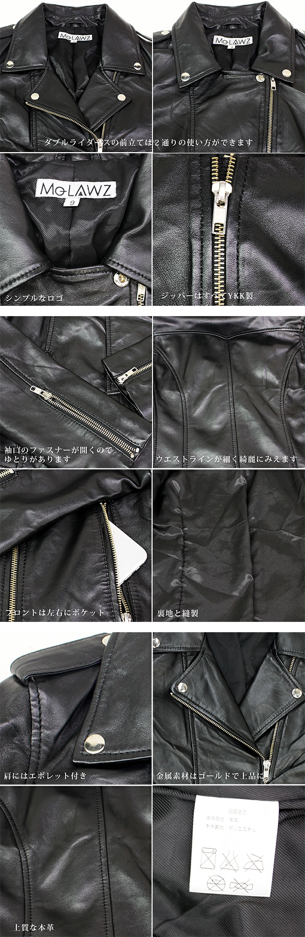 Toggle【商品の説明】レディース ラムレザー 本革 ダブル ライダース ジャケット 但馬屋