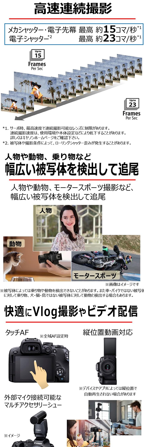 - 最大約2420万画素のAPS-Cセンサーを搭載し、魅力的な画像を提供します。