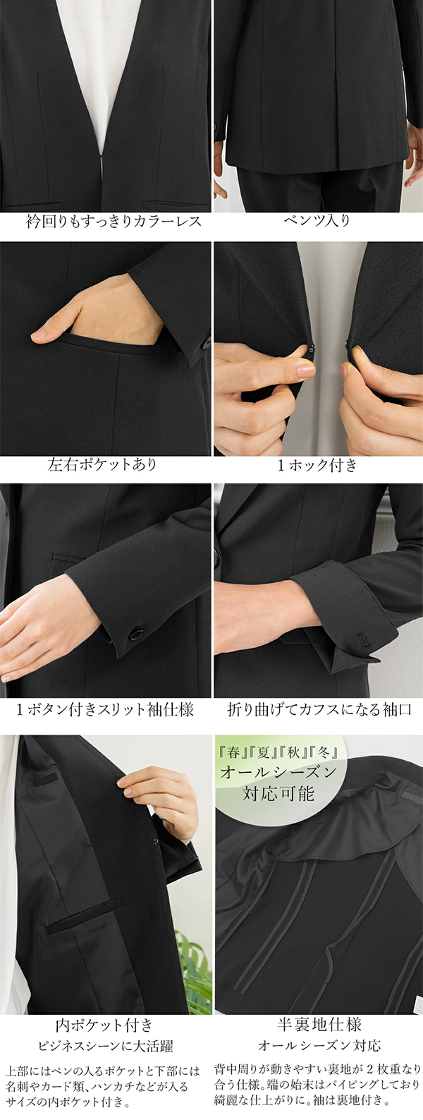 - ホック付きカラーレスジャケット