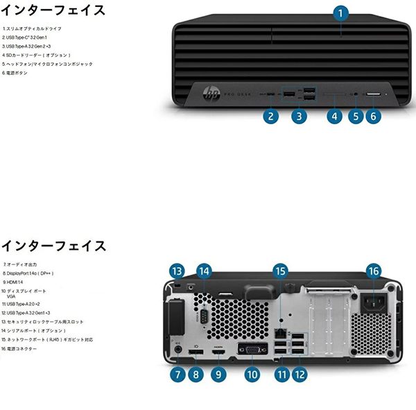 - メーカー型番 HP Pro 400 G9 SFF 省スペ-ス 270×296×95 mm