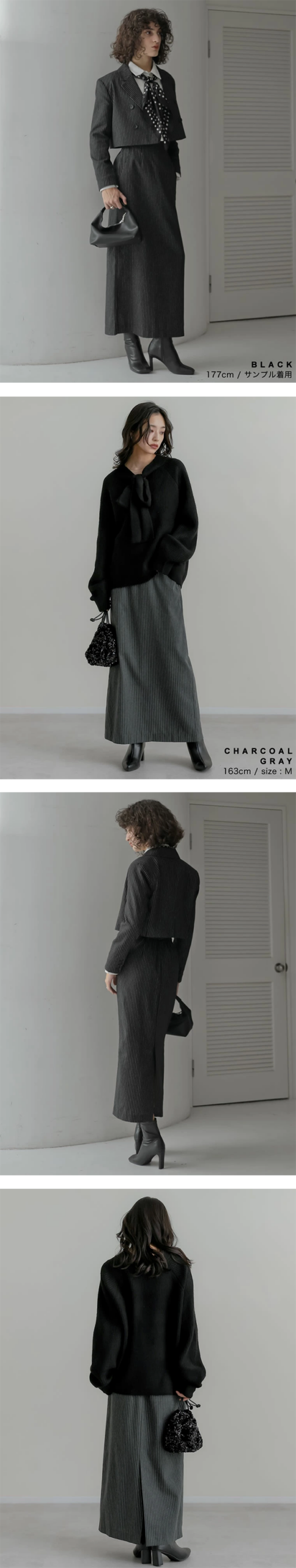 - タイトなシルエットは女性らしさを際立たせつつ、縦に走るストライプが視覚的にスタイルを引き締めてくれます。