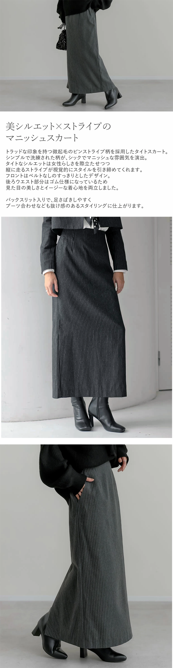 - 美シルエット×ストライプのマニッシュスカート!