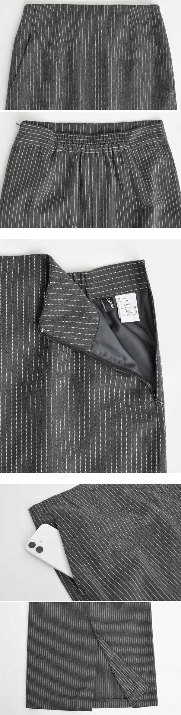 ▶ トラッドな印象を持つ微起毛のピンストライプ柄を採用したタイトスカート
