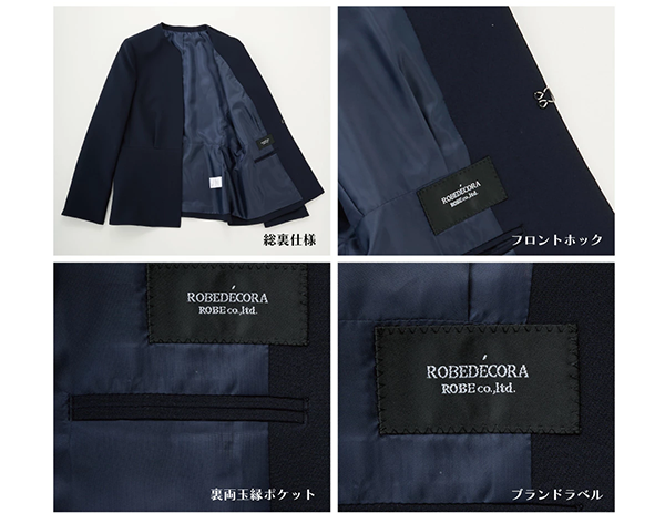 - 【ノーカラージャケット】 ・ノーカラー ・左右フラップポケット ・スプリングホック ・総裏仕様